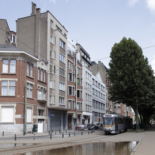 The Boulevard d'Ypres and the Quai du commerce form an angle leading to the south on the shore gate. It was almost at the end of this block that two identical buildings were built in 1933, each opening onto one of the two avenues and meeting in the center of the crossing plot, creating a patio allowing light to be rear of the dwellings making up the building. The two facades visible from the public space are strictly identical. Inspired by art-deco, they were designed by Teughels, the architect of the complex. The double extension project was designed to adapt to this double situation by working the volume in a different way to adapt to the built templates of the street. The former maids' rooms have thus been reworked and raised to recompose the perspective in the street by harmonizing with the volumes already in place. In order to preserve and enhance the original building, the extensions have been set back. The railing of the passageway thus formed coming to cap the building by passing behind the old ornate pediment. The volumes have been cladded with a perforated skin in light aluminium. The load-bearing structure, under the skin, is perceptible and gives a rhythm to the whole which extends the structuring elements of the old facade.